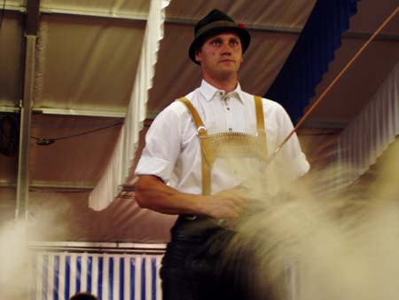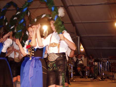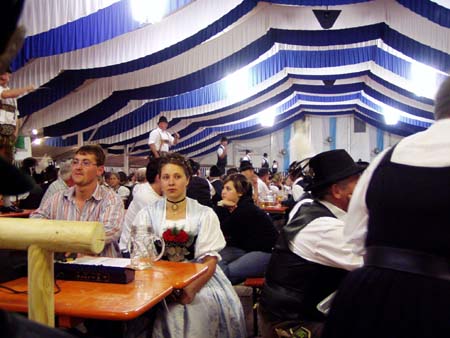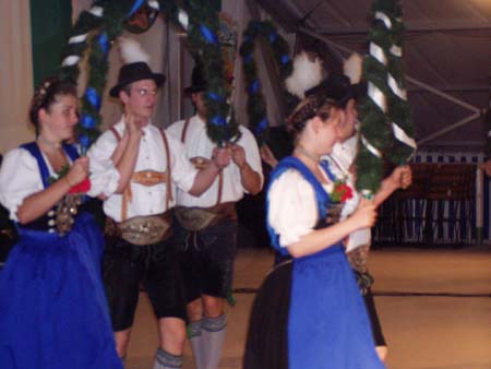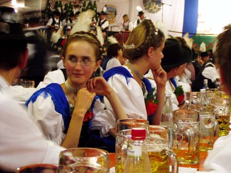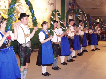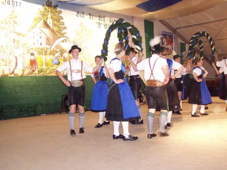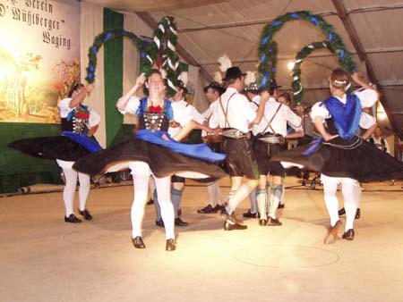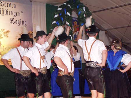 Zahlreiche Grassacher Trachtler besuchten den Festabend der Mühlbergler Waging im Festzelt.