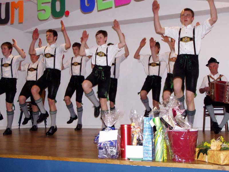 Der 1. Jugendleiter Klaus Mühlthaler feierte seinen 50zigsten Geburtstag und wurde von der Trachtenjugend mit ein paar Tänzen und Plattler überrascht. Die Ausschußmitglieder waren mit eingeladen. Es waren ca. 110 Gäste inklusive Trachtenjugend anwesend. Die verschiedenen Gruppen zeigten sehr schöne Einlagen.