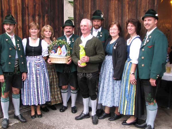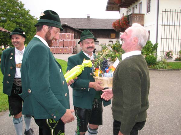 Die Vorstandschaft, der Vorplattler und die Jugendleiter gratulierten dem langjährigen Vereinsspieler Johann Mayer zum 75. Geburtstag.