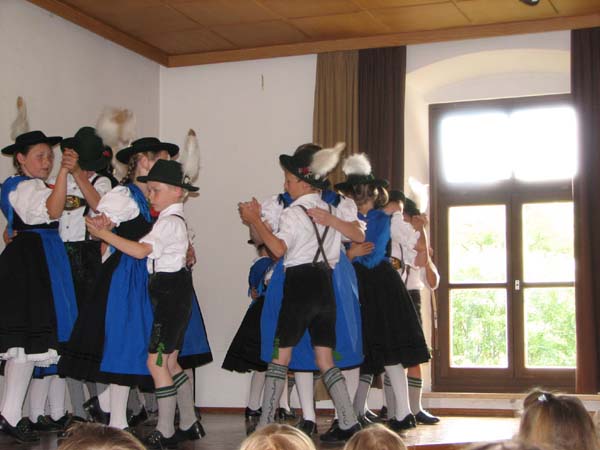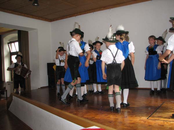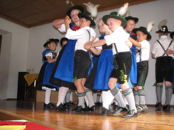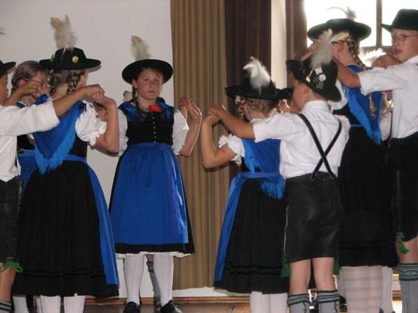 Die Trachtenkinder brachten bei der Kindergarten -Taufe eine kleine Einlage mit zwei Tänzen und einem Plattler.