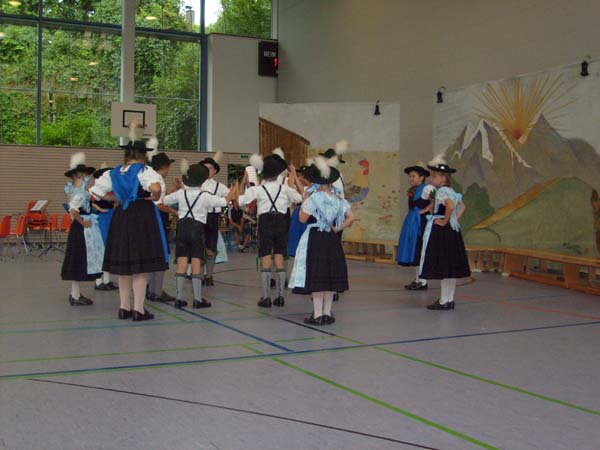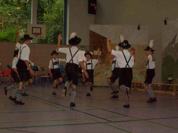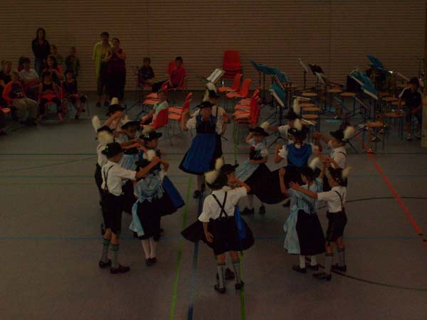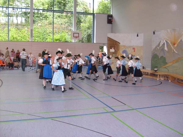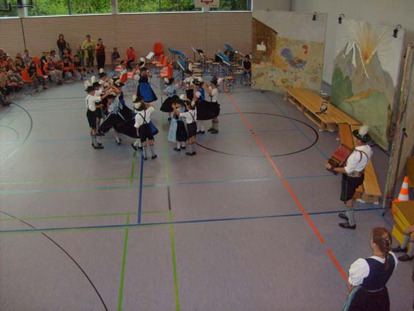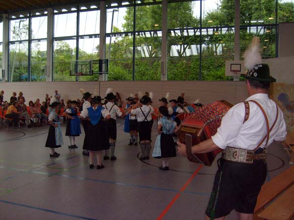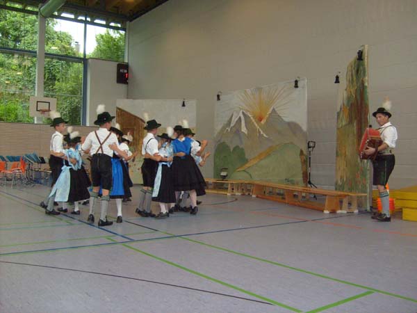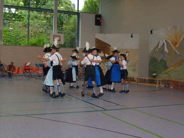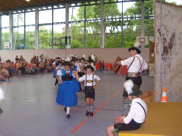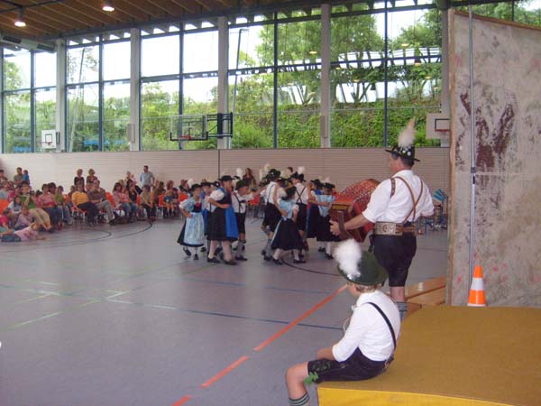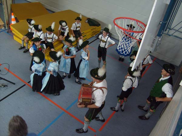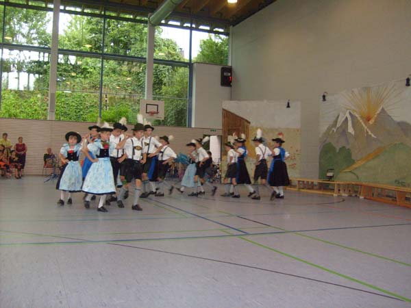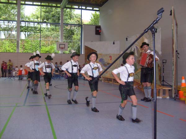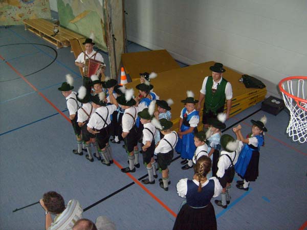 In der Turnhalle in Tittmoning wurden die Tänze und Plattler vor den Eltern und Besuchern des Festes aufgeführt. Begleitet wurden die Kinder vom 1. Jugendleiter Rupert Brandmayer, 2. Jugendleiterin Magdalena Kräbl und musikalisch umrahmt von Klaus Mühlthaler.