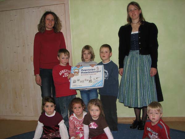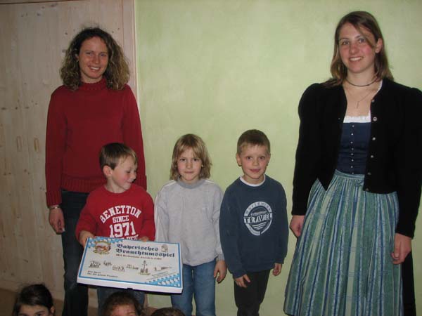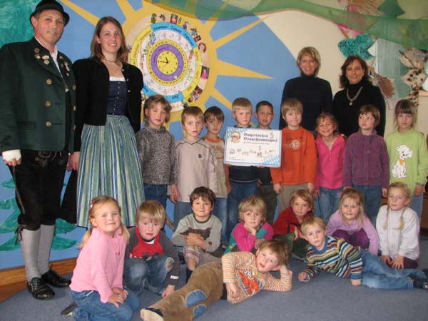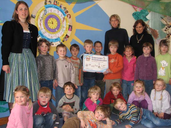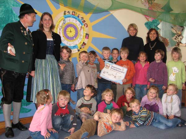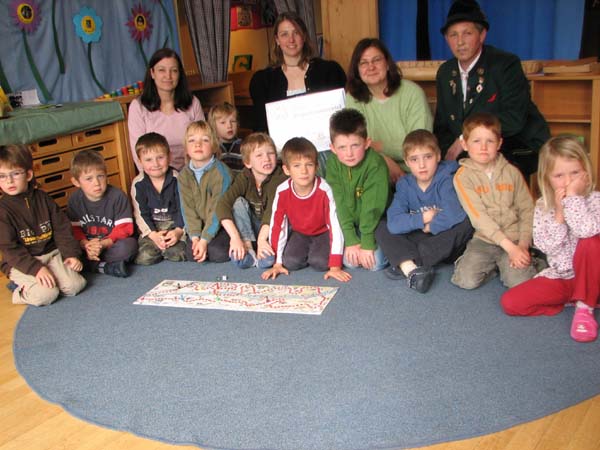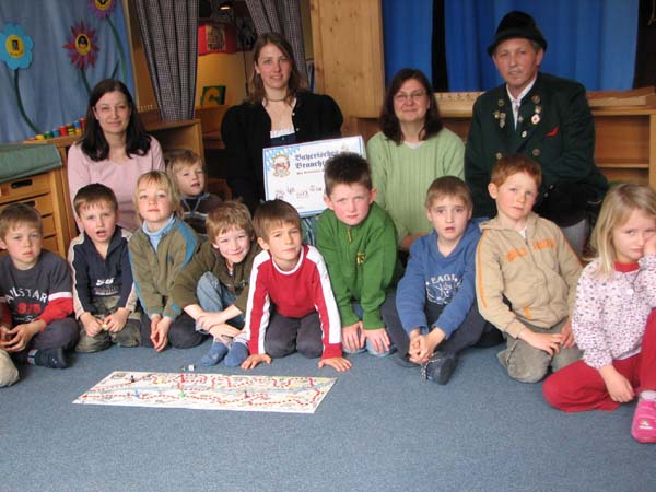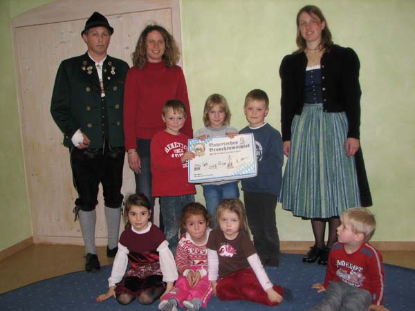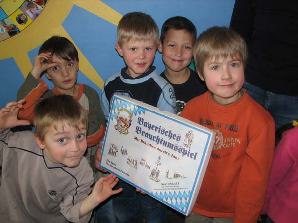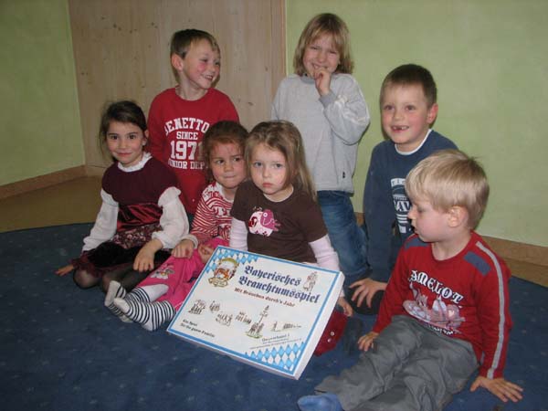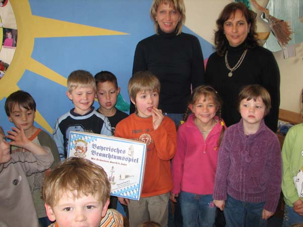 Die Jugendleiter Magdalena Kräbl und Klaus Mühlthaler vom Trachtenverein Alpenrose Grassach – Tittmoning übergaben im Rahmen „Trachtenjugend sucht Nachwuchs“, dem Dorfkindergarten Asten, dem Städtischen Kindergarten Kay, dem Benedikt Kindergarten Tittmoning und der Bücherei St. Laurentius Tittmoning je ein Bayerisches Brauchtumsspiel mit Bräuchen durch´s Jahr. Das Spiel beinhaltet ein Spielbrett mit Spielfiguren, Würfel, Spielanleitung und ein Heft „Brauchtum und Brauchtumspflege“, in dem die verschiedensten Bräuche beschrieben sind. Das komplette Spiel wurde vom Gauverband 1 herausgegeben.