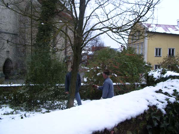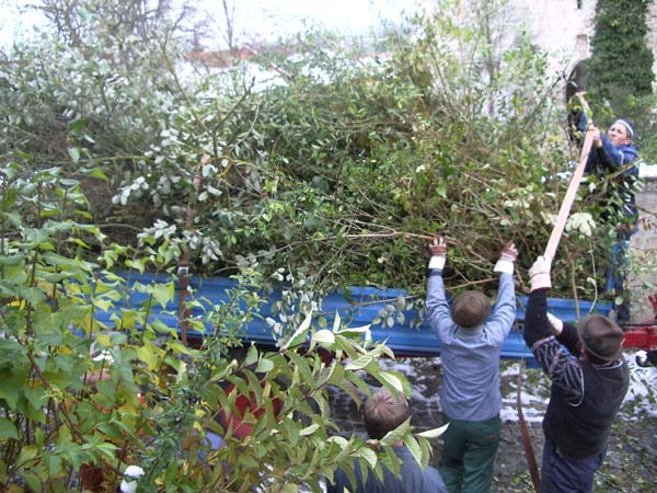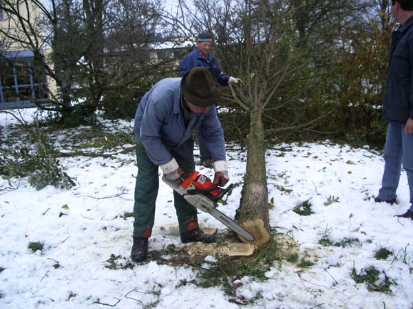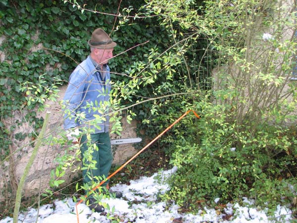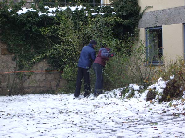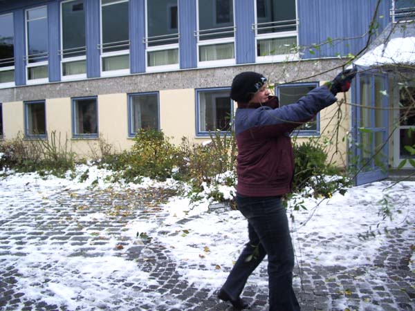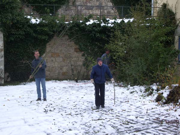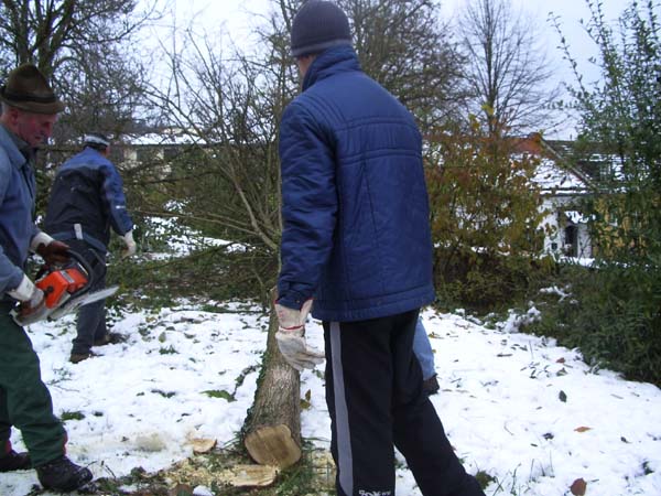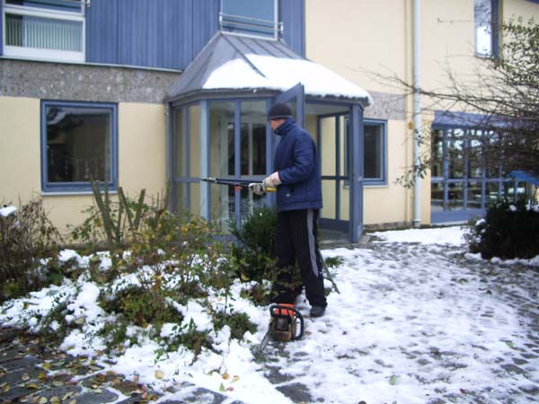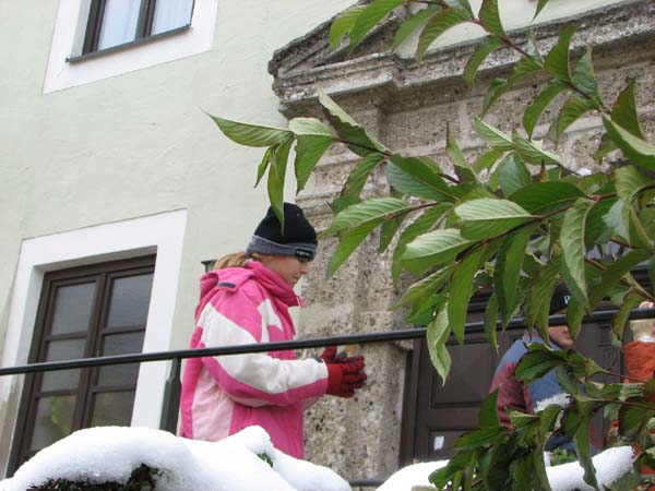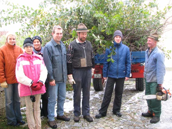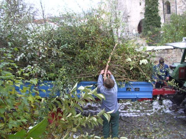 Am Samstag den 4. November schnitten einige Jugendliche mit ihrem Jugendleiter, dem 2. Vorstand, dem Vorplattler und dem Musikanten Langer Hansl die schon sehr hochgewachsenen Stauden vorm Pfarrsaal zusammen.