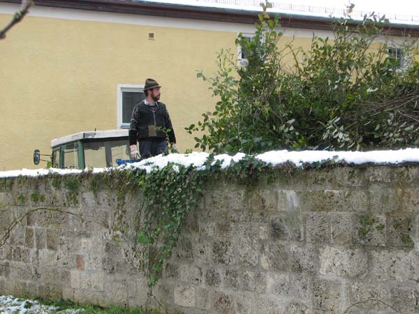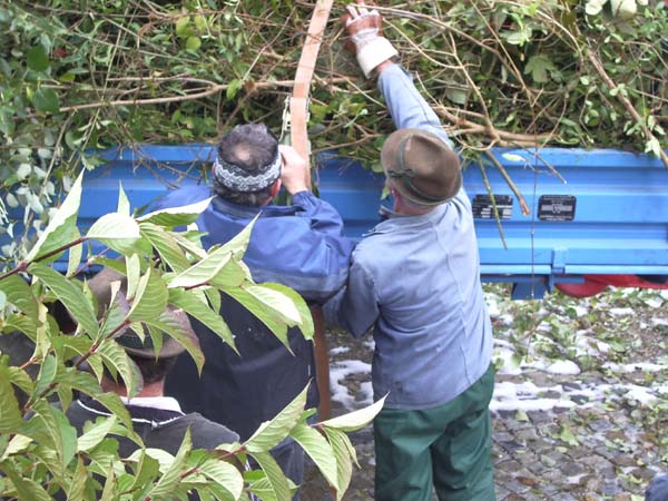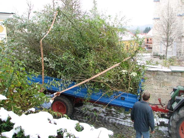 Auf Anfrage vom Mesner Reiner Zimmermann an die Trachtenjugend, war diese bereit die ganzen Stauden um den Pfarrsaal und entlang der Stützmauer Richtung Kirche zurück zu schneiden. Der Langer Hansl kam mit Bulldog und Kipper, der dann bis oben hin voll mit Ästen und Stauden war. Eine Pause mit Leberkässemmeln und Getränke durfte da auch nicht fehlen. Somit bringt die Trachtenjugend wieder vernünftiges Tageslicht in die Räumlichkeiten vom Pfarrheim.