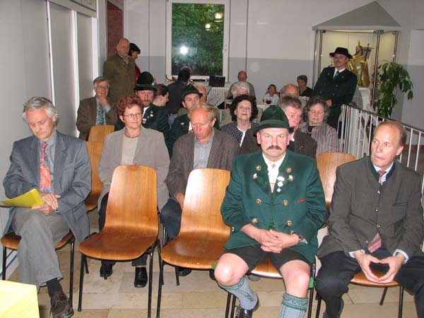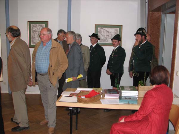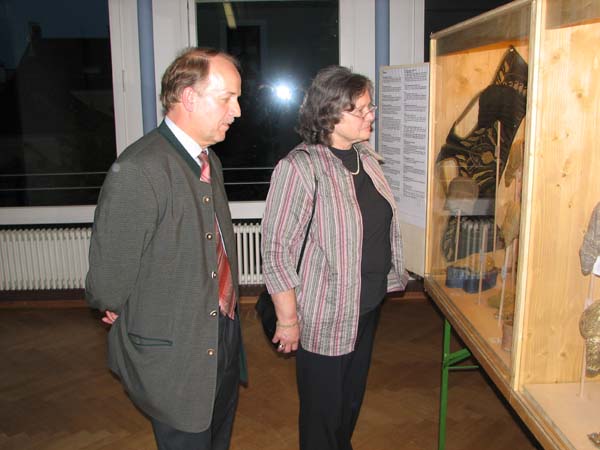 Bei der Eröffnung begrüßte Herr Ruhland die Tittmoninger Soat´nmusi, den Bezirksheimatpfleger Stefan Hirsch, Herrn Hans Menzinger Vorstand vom Trachtenverein D´Würmtaler Menzing e.V., Herrn Roth, Herrn Görge, die Burgführer und den Trachtenverein mit Vorstand Koll. Anschließend erläuterte Herr Hirsch die Hüte und Hauben, nach seinen Ausführungen eröffnete er die Ausstellung und die Besucher gingen in den Pfarrsaal, wo die einzelnen Exponate in den Vitrinen mit Beleuchtung ausgestellt sind.