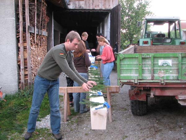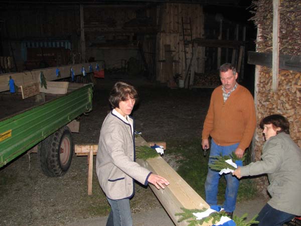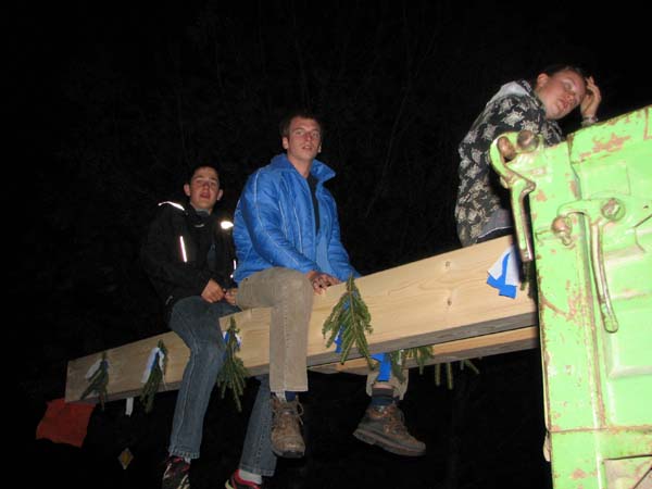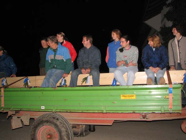 De Aktiven und de Faschingsgruppe vom Trachtenverein haben beim Vorstand Martin Koll und seiner Frau Petra den First gestohlen. Nach einigen Tagen wurde der First (2Teile) wieder zurück gebracht, dabei sind eigentlich alle irgendwie Schwarz geworden. Da der Vorstand noch die Fahrsilo abdecken mußte, wurde noch eifrig geholfen. Daraufhin gab´s natürlich noch etwas nasses.