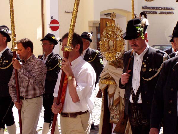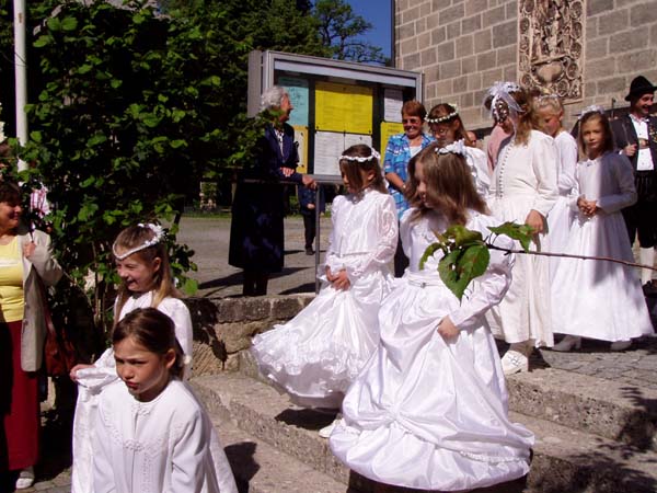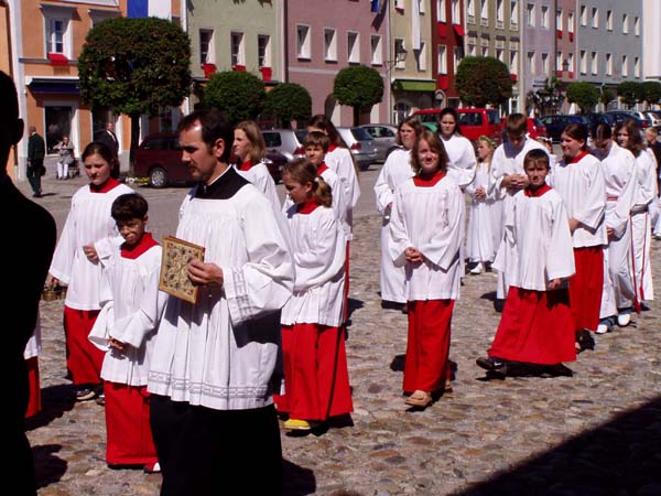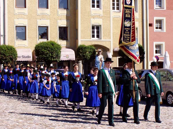 Am Donnerstag den 26. Mai 2005 war wieder Fronleichnam, der Trachtenverein Grassach - Tittmoning beteiligte sich wieder mit einer ansehnlichen Zahl von 70 Mitgliedern. Somit gaben die Trachtler wieder ein sehr schönes Bild ab. Die Röckifrauen, Diandl, Buam und Männer waren wieder sehr schön in ihren Gewändern und Trachten angezogen. Es beteiligten sich einige andere Vereine, viele Kirchgänger und die Kommunion-Kinder waren natürlich ganz vorne dabei.