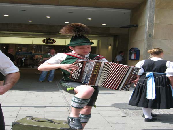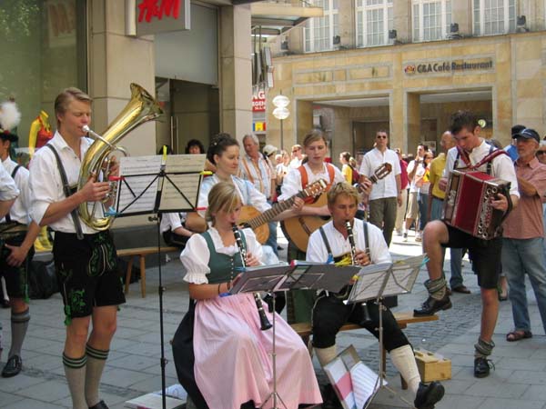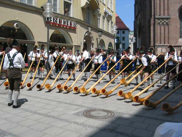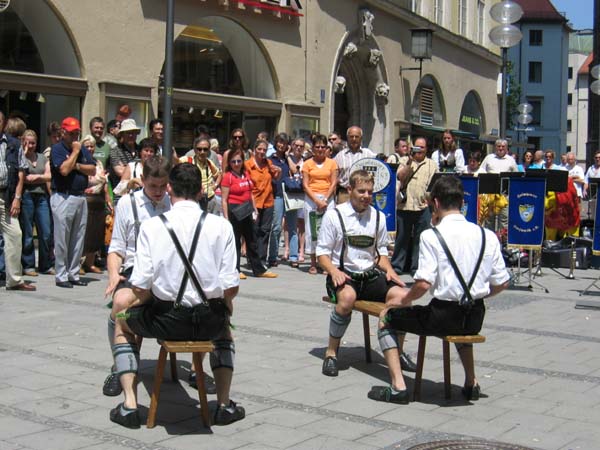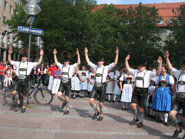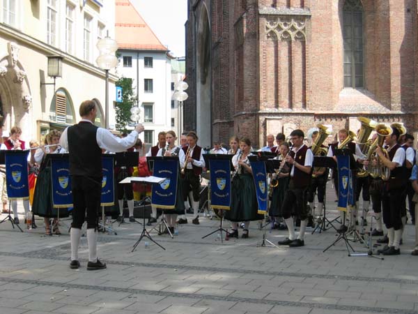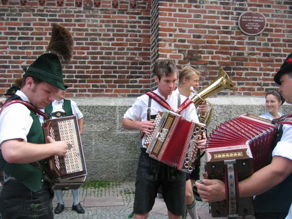Am 24. Juni 2006 fuhr die Gebietsgruppe zusammen mit den Teisendorfer Aktiven nach München zum Straßenmusizieren. Abfahrt war bereits um 7.30 Uhr in Waging. Auf dem Weg nach Teisendorf, wo wir die Teisendorfer Aktiven + Musi abholten, wurde zur Feier des Tages bereits die erste Halbe Bier angezapft.