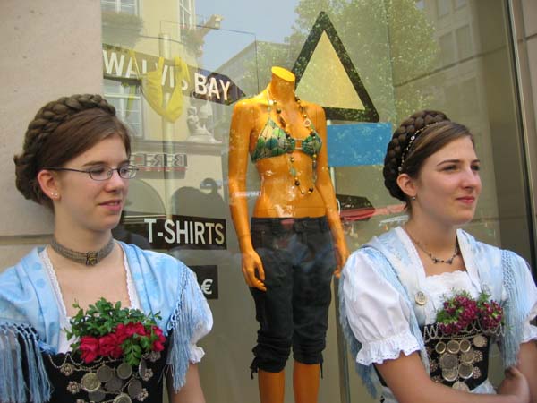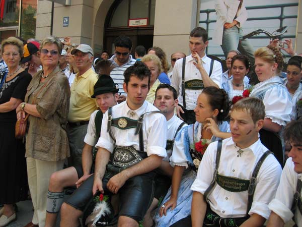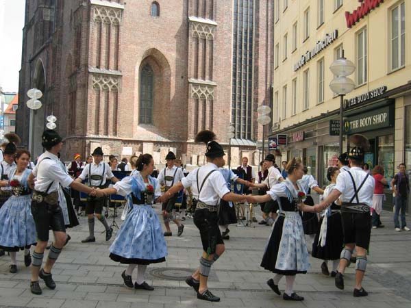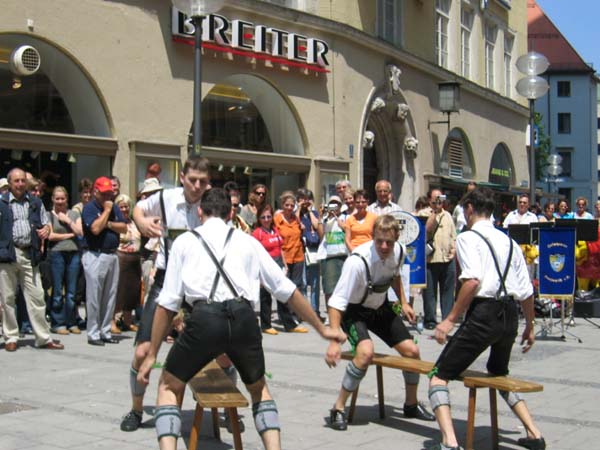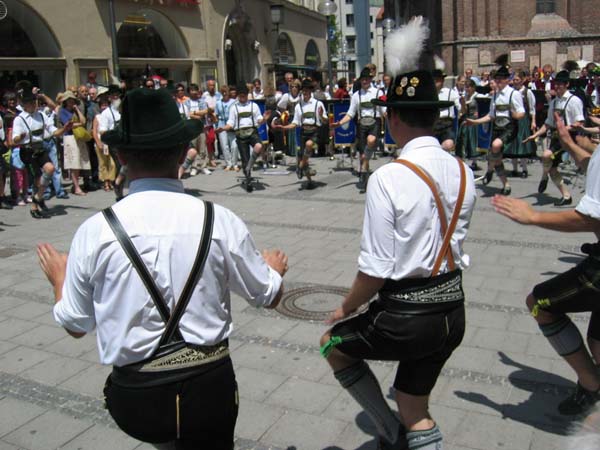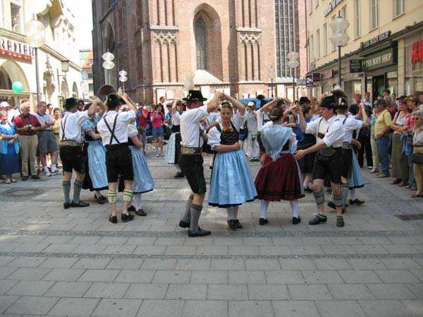 Unser Auftrittsort war vor der Frauenkirche in der Fußgängerzone. Wir hatten zusammen insgesamt ein Programm von drei Stunden. Den ersten Teil machten die Teisendorfer Aktiven mit verschiedenen Tänzen und Plattler.