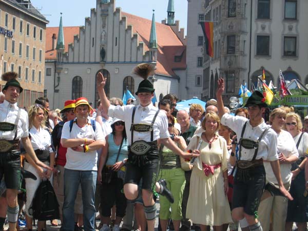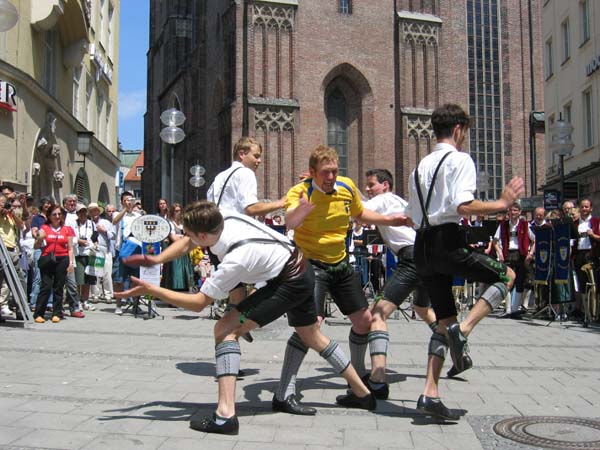 Gebietsgruppe beim Straßenmusizieren bei der Fußballweltmeisterschaft in München