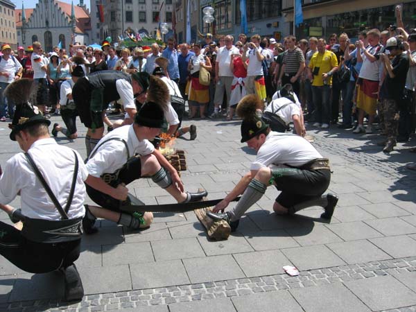 Zum Schluss zeigten die Teisendorfer Aktiven auf dem Marienplatz noch mal den Holzhacker.