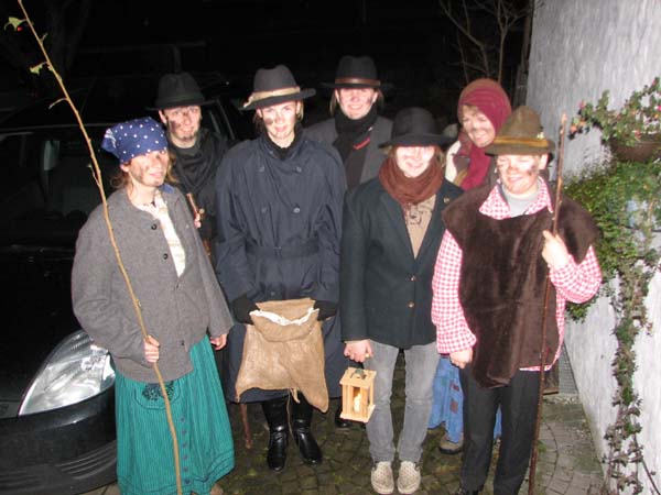 De 2. Jugendleiterin Magdalena Kräbl und die Marion Haindl sind mit einigen Jugendlichen Trachtlerinnen zum Kletzei ganga. Auf dem Foto sind sie gerade beim 1. Jugendleiter Klaus Mühlthaler.