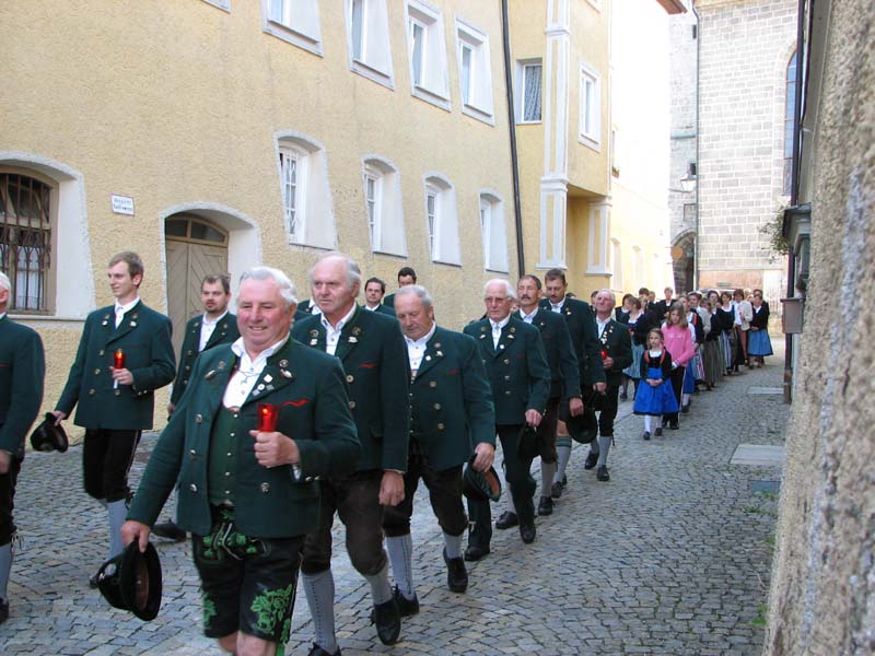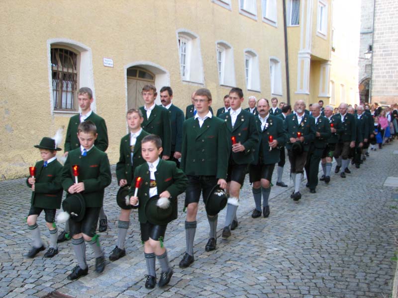 Der Trachtenverein Alpenrose Grassach - Tittmoning organisierte heuer wieder eine Maiandacht mit Lichterprozession. Nach dem Zug von der Stiftskirche in die Klosterkirche begann Herr Pfarrer Michael Wehrsdorf mit der Maiandacht. Sie wurde von der Eckbankmusi, dem Jagag´sang und den Guggenberger Sängerinnen in der gefüllten Kirche gestaltet. Es waren ca. 135 Trachtlerinnen und Trachtler dabei. Anschließend wurde noch im Braugasthof eingekehrt.